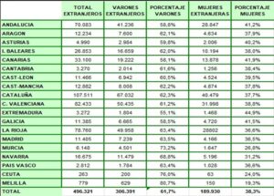 De vuelta al ámbito nacional, el informe elaborado por ATA analiza el trabajo autónomo entre el colectivo de personas extranjeras (comunitarias y no comunitarias), que va en continuo aumento en los últimos años. En diciembre de 2025, había 496.321 personas trabajadoras autónomas procedentes de fuera de nuestras fronteras cotizando al Régimen Especial de Trabajadores Autónomos (RETA) en España, de los cuales el 38,3% son mujeres (porcentaje superior al 37,1% en el conjunto del RETA), lo que en términos absolutos supone 189.930 autónomas extranjeras y 306.391 varones.